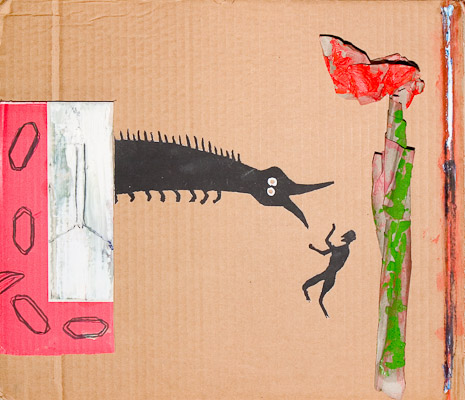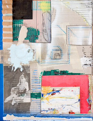 Bildträger vorwiegend Material-Collagen, z.B. aus Holz oder Kartonagen, die konstruktiv in die 3. Dimension, aus der Fläche heraus treten und als Malgrund verwendet werden . Das Gesamt-Objekt bleibt dabei weiterhin flächig ausgeprägt, als Bild(-Objekt) für die Wand. Es werden oft auch weitere Objekte, z.B. Plastikteile, Spielzeuge, in die Gestaltung des Bild-Objektes hinzugefügt.