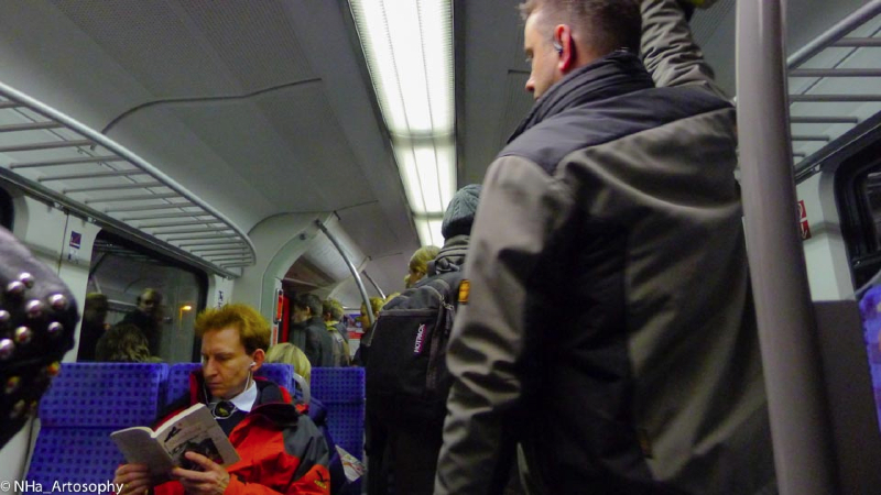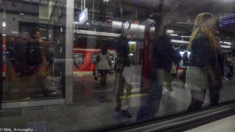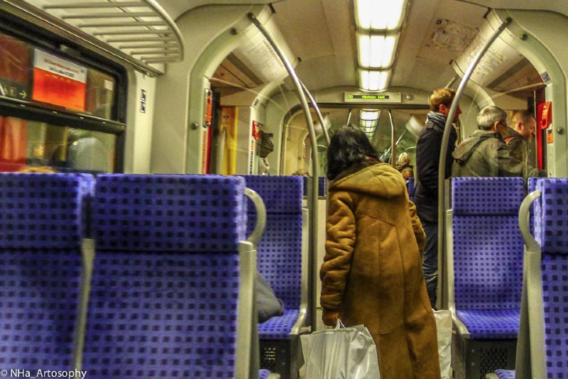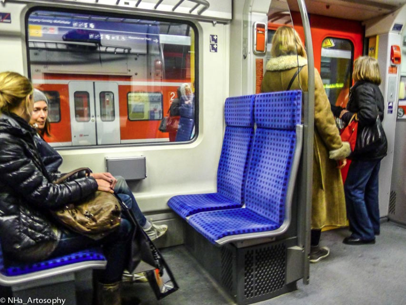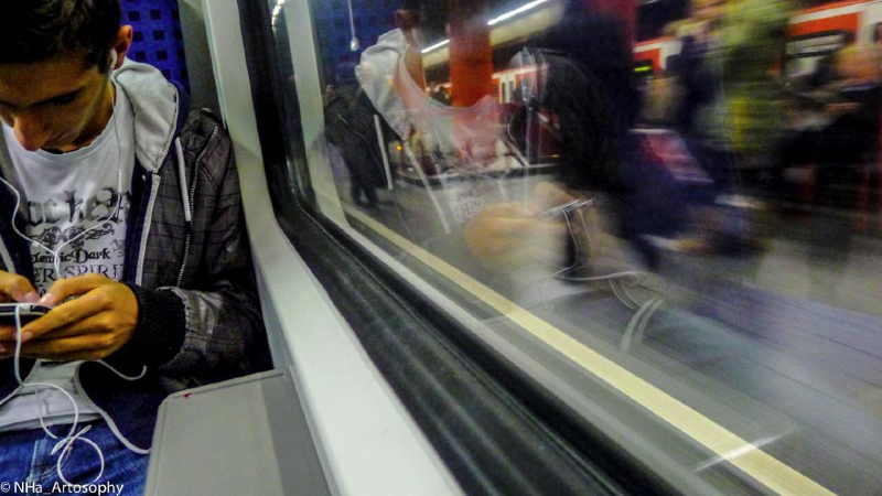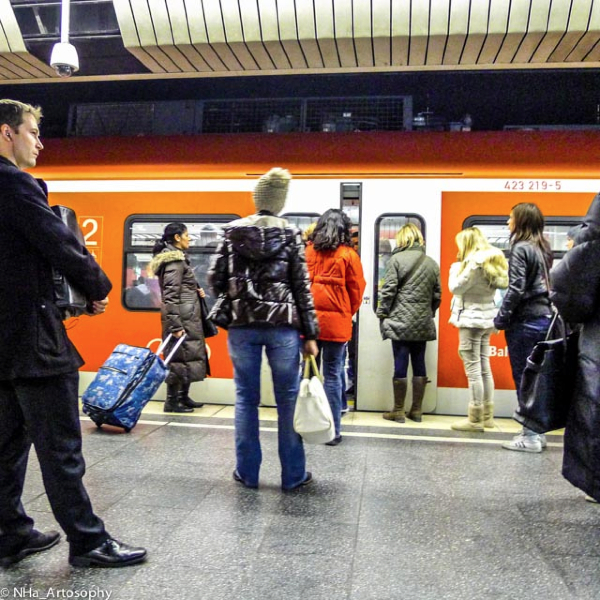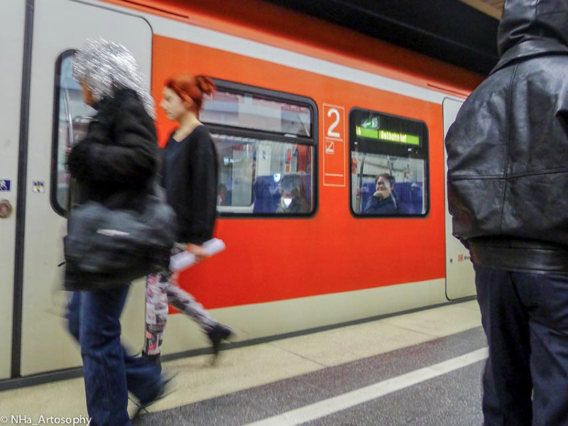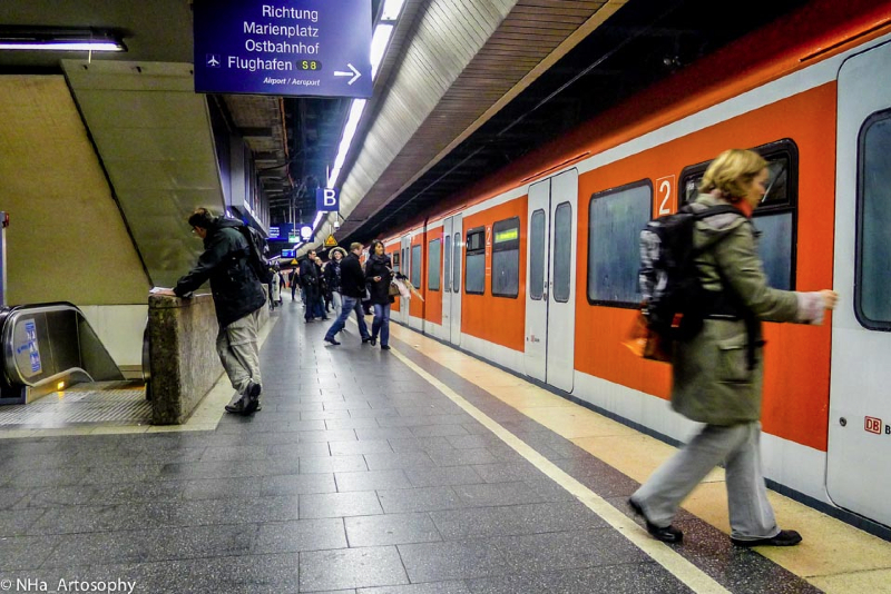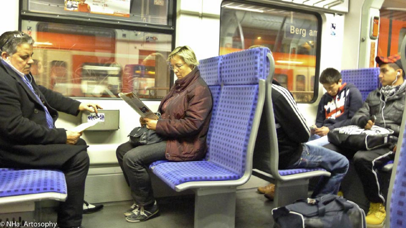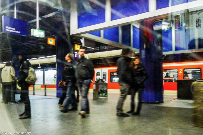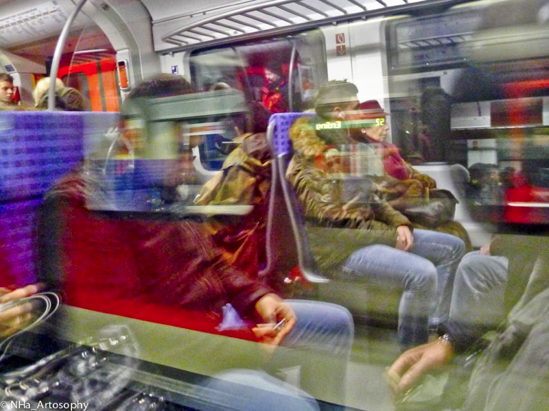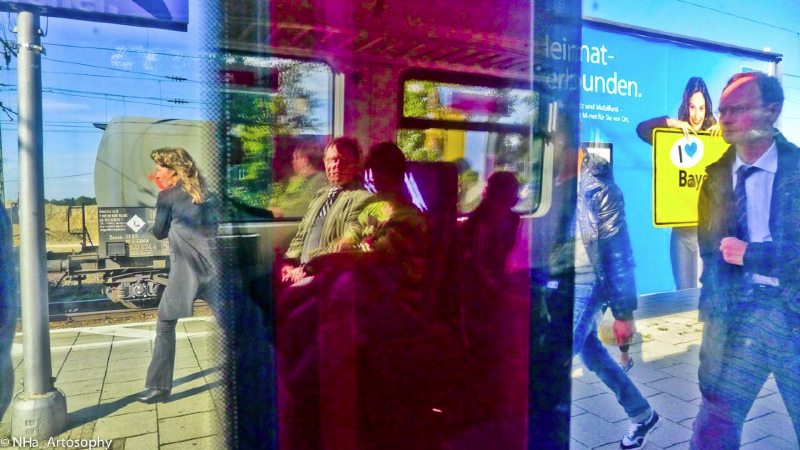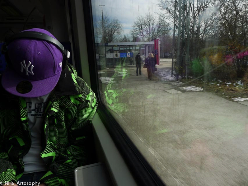 S2 Life in Transit: In diesem Fotoprojekt geht es um die Wahrnehmung und das Aufzeigen des speziellen Lebensumfeldes von Pendlern, die täglich, mit der S2, zwischen Poing und München-Hauptbahnhof, unterwegs sind zu ihrer Arbeit. Beispielhaft für Arbeitnehmer weltweit, die während langer Berufsjahre Lebens-Zeit in öffentlichen Transit-Lebens-Räumen zubringen, mehr oder weniger fremd gesteuert. Die Fotos wurden ausschließlich aufgenommen, im und aus dem Zugabteil heraus, sowie auf den Bahnsteigen in Poing, Ostbahnhof, Marienplatz, Karlsplatz und München-Hauptbahnhof