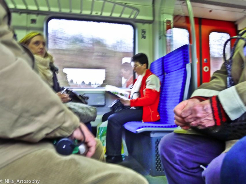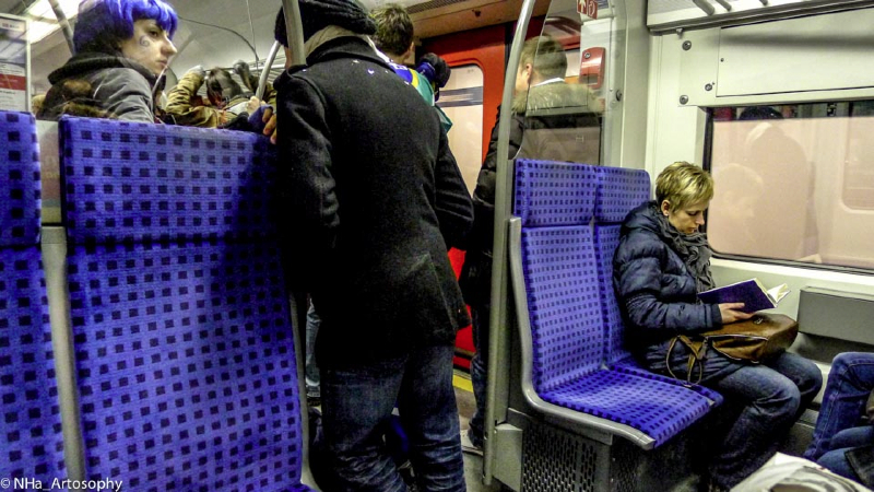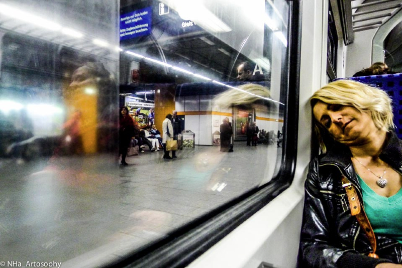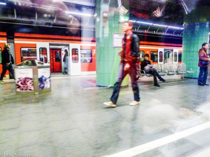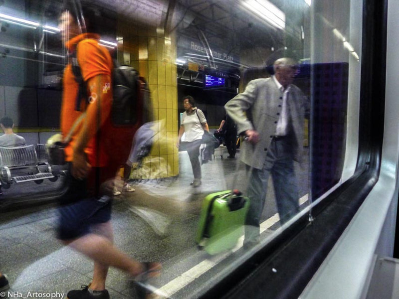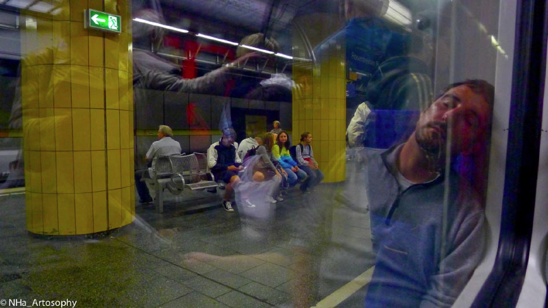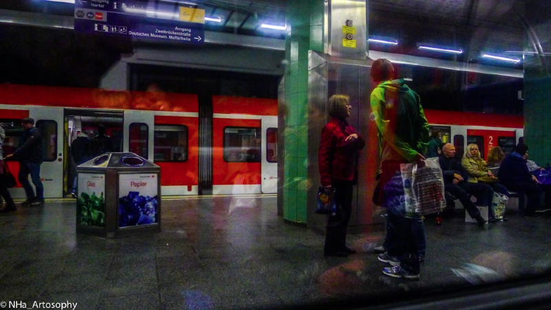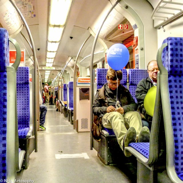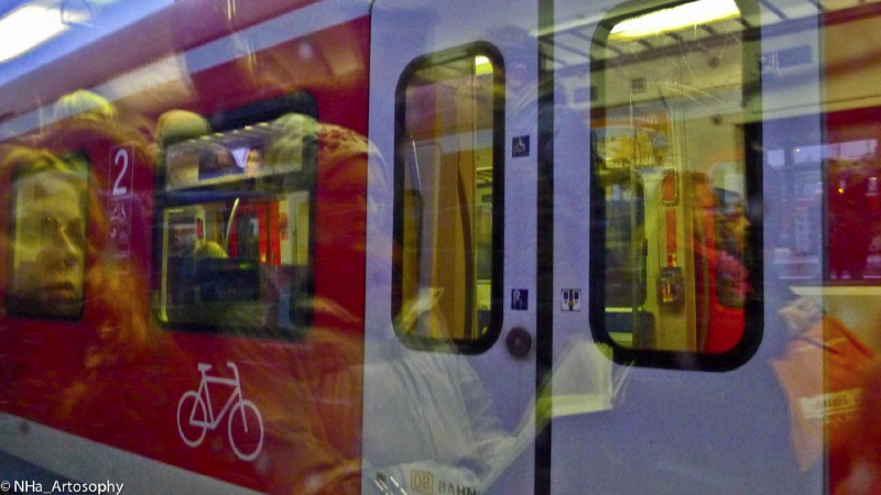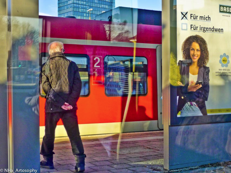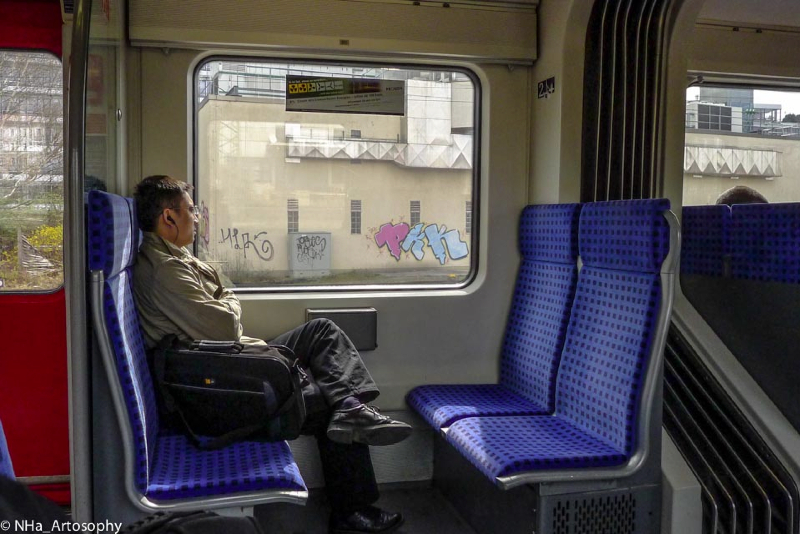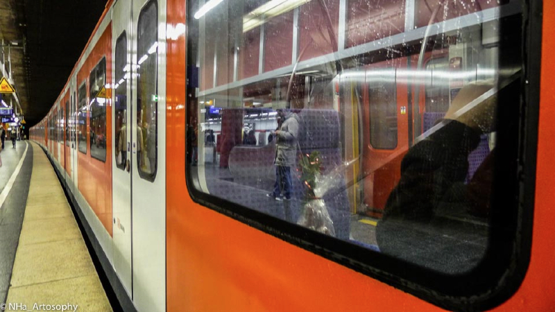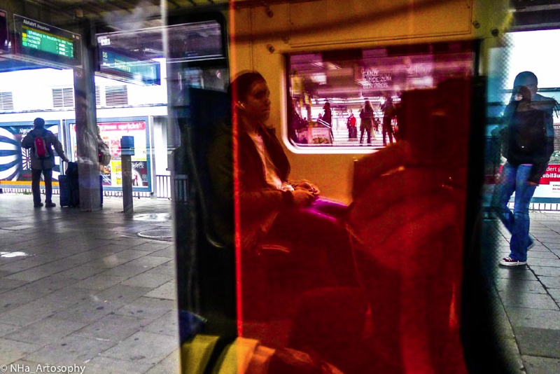 S2 Life in Transit: In diesem Fotoprojekt geht es um die Wahrnehmung und das Aufzeigen des speziellen Lebensumfeldes von Pendlern, die täglich, mit der S2, zwischen Poing und München-Hauptbahnhof, unterwegs sind zu ihrer Arbeit. Beispielhaft für Arbeitnehmer weltweit, die während langer Berufsjahre Lebens-Zeit in öffentlichen Transit-Lebens-Räumen zubringen, mehr oder weniger fremd gesteuert. Die Fotos wurden ausschließlich aufgenommen, im und aus dem Zugabteil heraus, sowie auf den Bahnsteigen in Poing, Ostbahnhof, Marienplatz, Karlsplatz und München-Hauptbahnhof