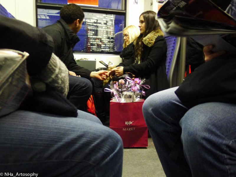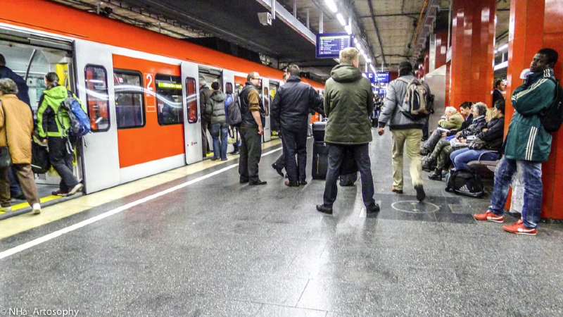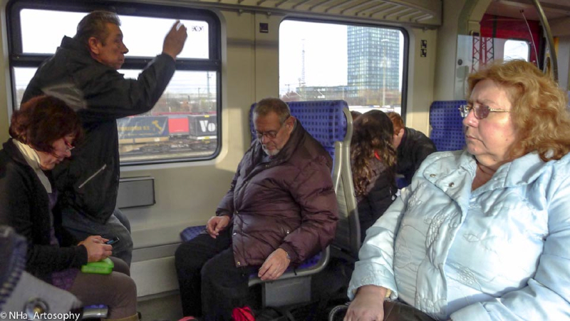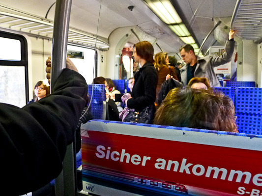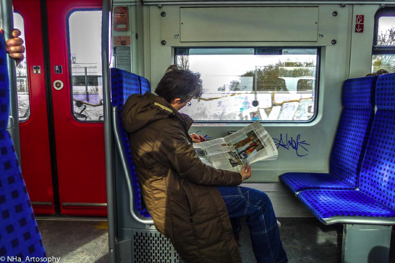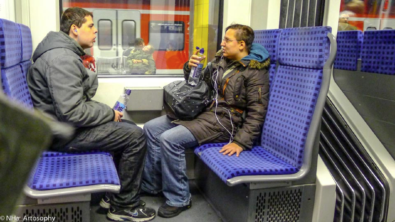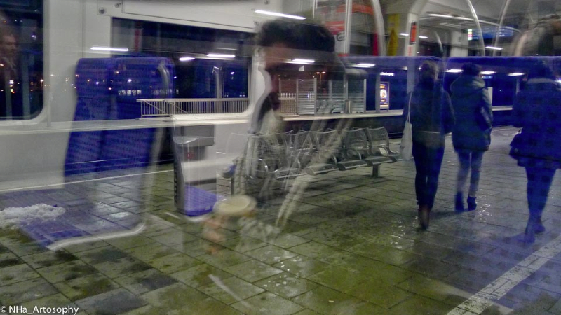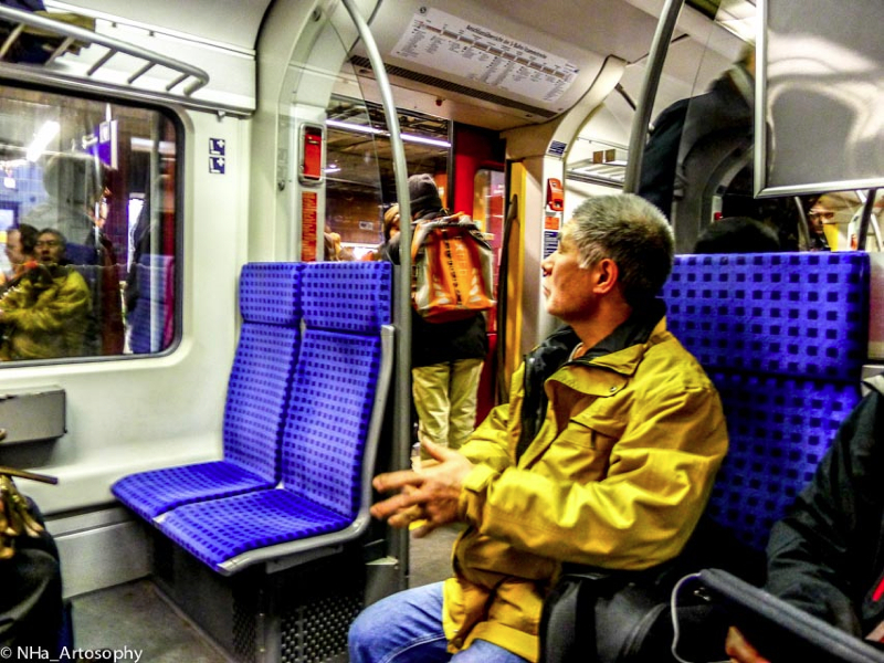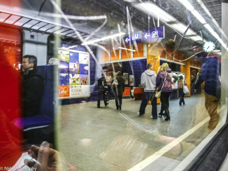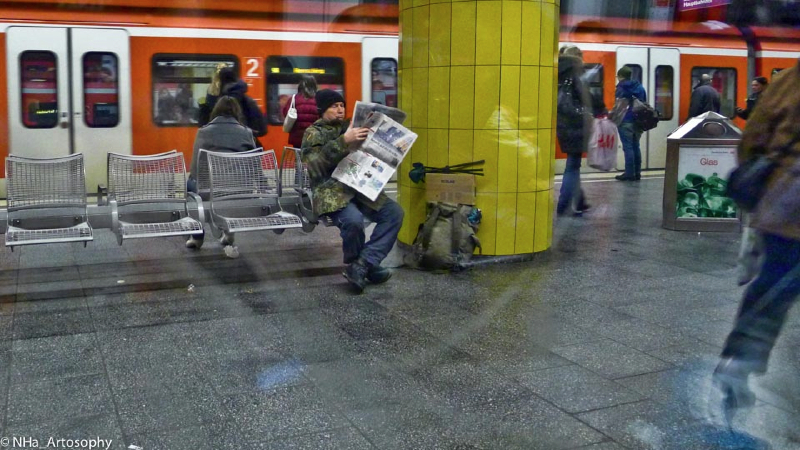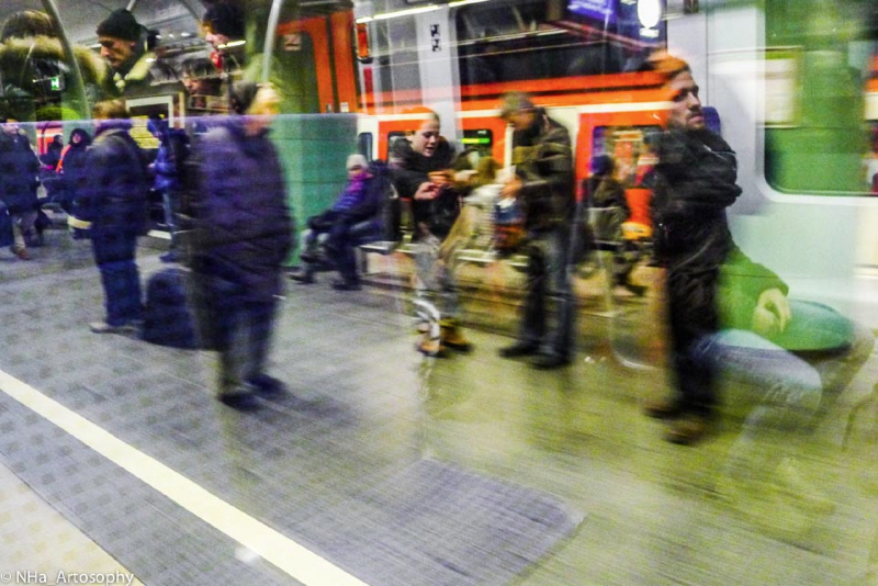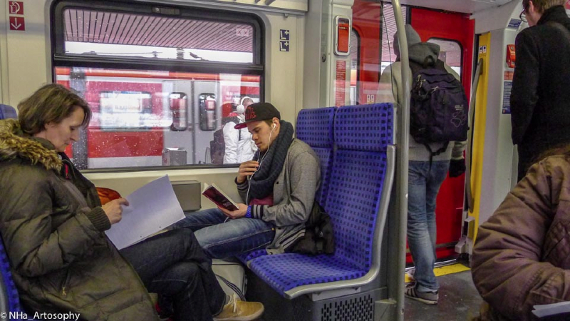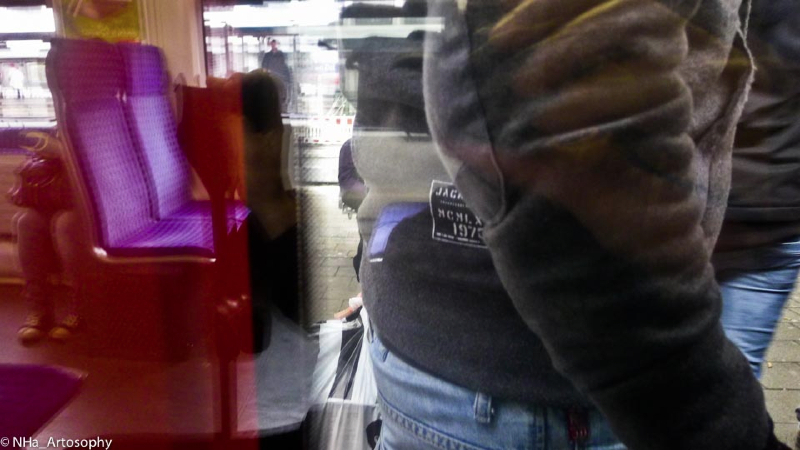 S2 Life in Transit: In diesem Fotoprojekt geht es um die Wahrnehmung und das Aufzeigen des speziellen Lebensumfeldes von Pendlern, die täglich, mit der S2, zwischen Poing und München-Hauptbahnhof, unterwegs sind zu ihrer Arbeit. Beispielhaft für Arbeitnehmer weltweit, die während langer Berufsjahre Lebens-Zeit in öffentlichen Transit-Lebens-Räumen zubringen, mehr oder weniger fremd gesteuert. Die Fotos wurden ausschließlich aufgenommen, im und aus dem Zugabteil heraus, sowie auf den Bahnsteigen in Poing, Ostbahnhof, Marienplatz, Karlsplatz und München-Hauptbahnhof