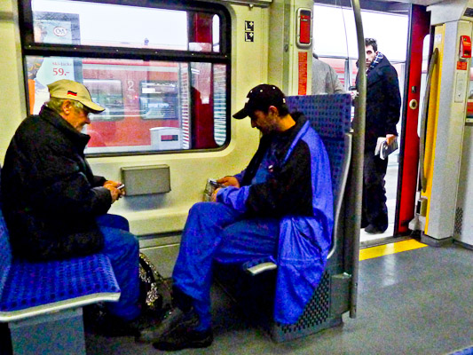 Es bleiben Fragen an die PendlerInnen, an uns, an die Gesellschaft. Wie gestalten wir diesen Lebensraum, der uns Lebensenergie gibt oder nimmt, der uns Lebenszeit kostet. Was nehmen wir hin und was können, wollen wir gestalten – einen gewissen Freiheitsgrad ermöglichen die neuen Kommunikationsmittel, mit denen wir uns an das Leben ausserhalb des Transitraumes einkoppeln, ob privat oder beruflich. Ansonsten bleibt erholen, lesen, schauen, plaudern mit KollegInnen vielleicht, … was unser zufälliger Platz uns an Möglichkeiten bietet.